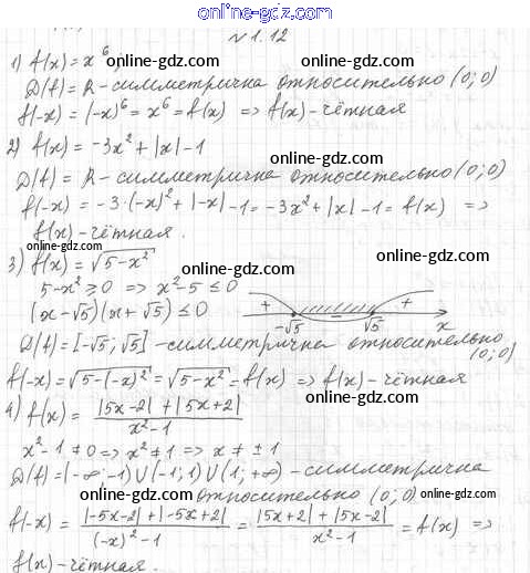 Готовые домашние задания по Алгебре за 10 класс Учебник Мерзляк, Номировский Алгоритм успеха Базовый уровень 2022 - §1. Наибольшее и наименьшее значения функции. Чётные и нечётные функции 1.12