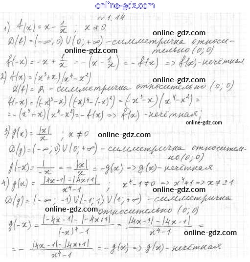 Готовые домашние задания по Алгебре за 10 класс Учебник Мерзляк, Номировский Алгоритм успеха Базовый уровень 2022 - §1. Наибольшее и наименьшее значения функции. Чётные и нечётные функции 1.14