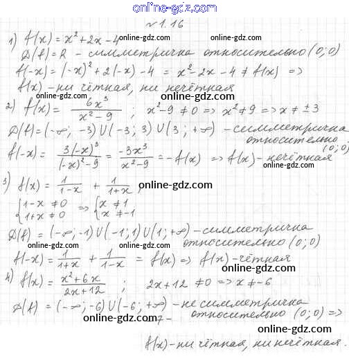 Готовые домашние задания по Алгебре за 10 класс Учебник Мерзляк, Номировский Алгоритм успеха Базовый уровень 2022 - §1. Наибольшее и наименьшее значения функции. Чётные и нечётные функции 1.16
