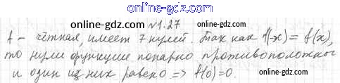 Готовые домашние задания по Алгебре за 10 класс Учебник Мерзляк, Номировский Алгоритм успеха Базовый уровень 2022 - §1. Наибольшее и наименьшее значения функции. Чётные и нечётные функции 1.27