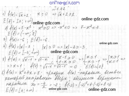 Готовые домашние задания по Алгебре за 10 класс Учебник Мерзляк, Номировский Алгоритм успеха Базовый уровень 2022 - §1. Наибольшее и наименьшее значения функции. Чётные и нечётные функции 1.42