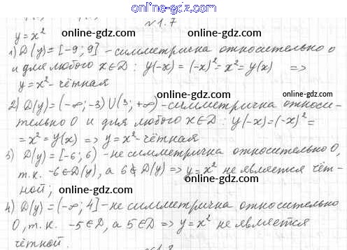 Готовые домашние задания по Алгебре за 10 класс Учебник Мерзляк, Номировский Алгоритм успеха Базовый уровень 2022 - §1. Наибольшее и наименьшее значения функции. Чётные и нечётные функции 1.7
