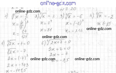 Готовые домашние задания по Алгебре за 10 класс Учебник Мерзляк, Номировский Алгоритм успеха Базовый уровень 2022 - §8. Определение корня n-й степени. Функция у= n√x 8.20