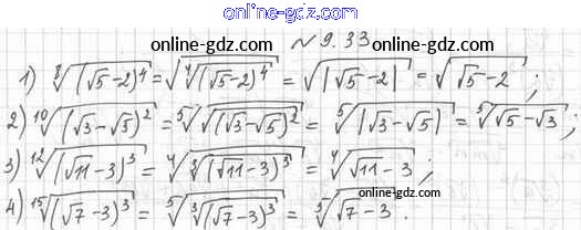 Готовые домашние задания по Алгебре за 10 класс Учебник Мерзляк, Номировский Алгоритм успеха Базовый уровень 2022 - §9. Свойства корня n-й степени 9.33