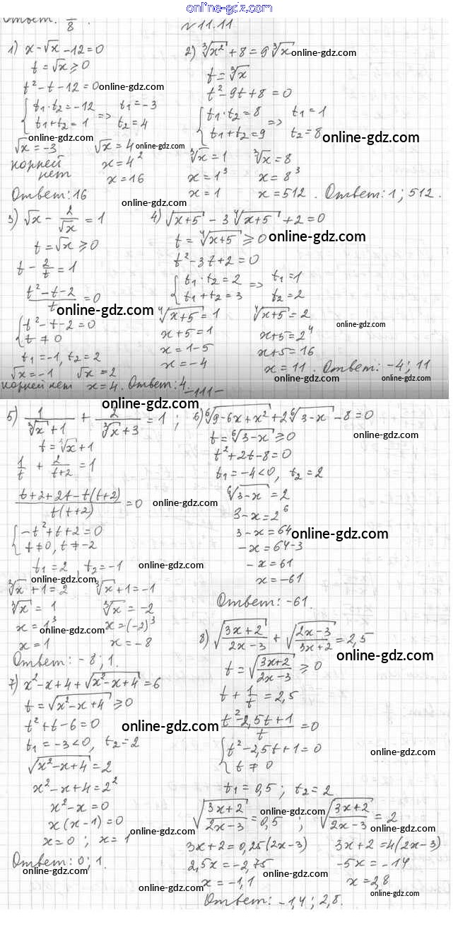 Готовые домашние задания по Алгебре за 10 класс Учебник Мерзляк, Номировский Алгоритм успеха Базовый уровень 2022 - §11. Иррациональные уравнения 11.11