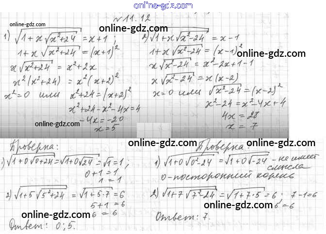 Готовые домашние задания по Алгебре за 10 класс Учебник Мерзляк, Номировский Алгоритм успеха Базовый уровень 2022 - §11. Иррациональные уравнения 11.12