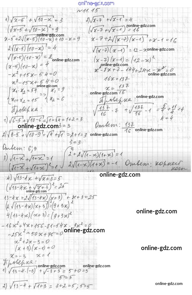 Готовые домашние задания по Алгебре за 10 класс Учебник Мерзляк, Номировский Алгоритм успеха Базовый уровень 2022 - §11. Иррациональные уравнения 11.15