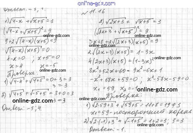 Готовые домашние задания по Алгебре за 10 класс Учебник Мерзляк, Номировский Алгоритм успеха Базовый уровень 2022 - §11. Иррациональные уравнения 11.16