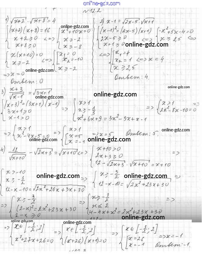Готовые домашние задания по Алгебре за 10 класс Учебник Мерзляк, Номировский Алгоритм успеха Базовый уровень 2022 - §12. Иррациональные уравнения 12.2