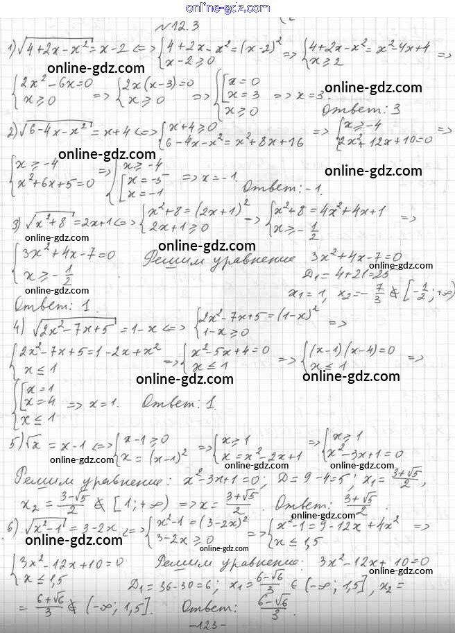 Готовые домашние задания по Алгебре за 10 класс Учебник Мерзляк, Номировский Алгоритм успеха Базовый уровень 2022 - §12. Иррациональные уравнения 12.3