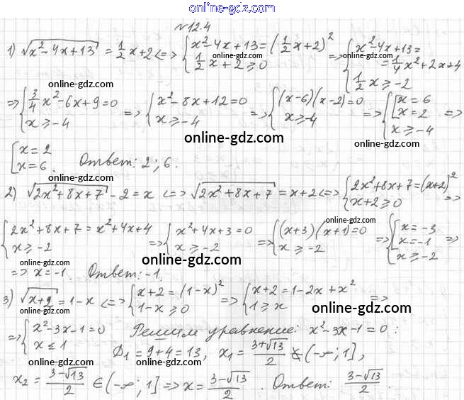 Готовые домашние задания по Алгебре за 10 класс Учебник Мерзляк, Номировский Алгоритм успеха Базовый уровень 2022 - §12. Иррациональные уравнения 12.4