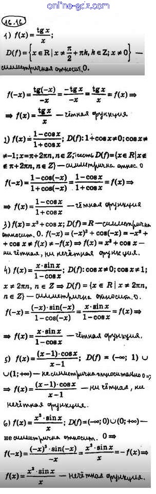 Готовые домашние задания по Алгебре за 10 класс Учебник Мерзляк, Номировский Алгоритм успеха Базовый уровень 2022 - §16. Знаки значений тригонометрических функций. Чётность и нечётность тригонометрических функций 16.16