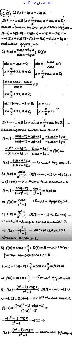 Готовые домашние задания по Алгебре за 10 класс Учебник Мерзляк, Номировский Алгоритм успеха Базовый уровень 2022 - §16. Знаки значений тригонометрических функций. Чётность и нечётность тригонометрических функций 16.17