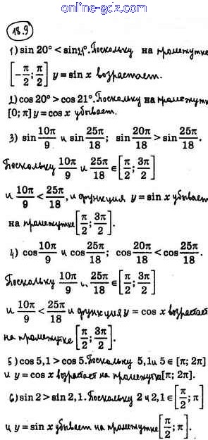 Готовые домашние задания по Алгебре за 10 класс Учебник Мерзляк, Номировский Алгоритм успеха Базовый уровень 2022 - §18. Свойства и графики функций y = sin x и y = cos x 18.9