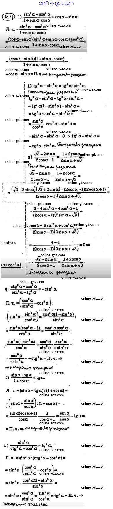 Готовые домашние задания по Алгебре за 10 класс Учебник Мерзляк, Номировский Алгоритм успеха Базовый уровень 2022 - §20. Основные соотношения между тригонометрическими функциями одного и того же аргумента 20.11