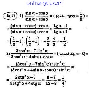 Готовые домашние задания по Алгебре за 10 класс Учебник Мерзляк, Номировский Алгоритм успеха Базовый уровень 2022 - §20. Основные соотношения между тригонометрическими функциями одного и того же аргумента 20.15