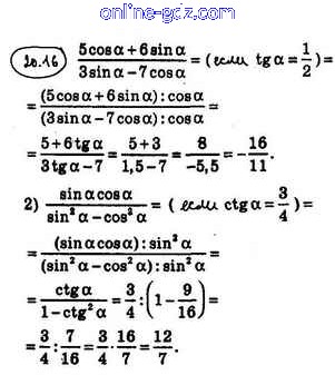 Готовые домашние задания по Алгебре за 10 класс Учебник Мерзляк, Номировский Алгоритм успеха Базовый уровень 2022 - §20. Основные соотношения между тригонометрическими функциями одного и того же аргумента 20.16