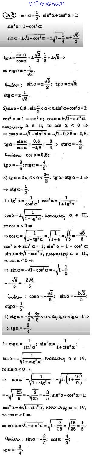 Готовые домашние задания по Алгебре за 10 класс Учебник Мерзляк, Номировский Алгоритм успеха Базовый уровень 2022 - §20. Основные соотношения между тригонометрическими функциями одного и того же аргумента 20.9