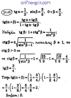Готовые домашние задания по Алгебре за 10 класс Учебник Мерзляк, Номировский Алгоритм успеха Базовый уровень 2022 - §21. Формулы сложения 21.15