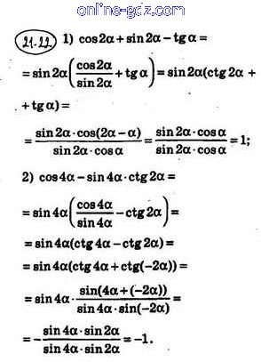 Готовые домашние задания по Алгебре за 10 класс Учебник Мерзляк, Номировский Алгоритм успеха Базовый уровень 2022 - §21. Формулы сложения 21.22