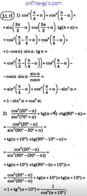 Готовые домашние задания по Алгебре за 10 класс Учебник Мерзляк, Номировский Алгоритм успеха Базовый уровень 2022 - §22. Формулы приведения 22.15