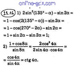 Готовые домашние задания по Алгебре за 10 класс Учебник Мерзляк, Номировский Алгоритм успеха Базовый уровень 2022 - §23. Формулы двойного и половинного углов 23.16