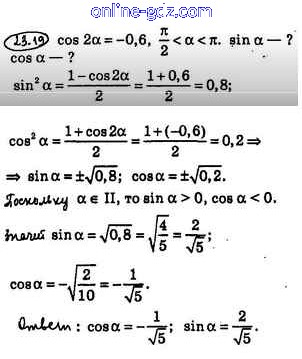 Готовые домашние задания по Алгебре за 10 класс Учебник Мерзляк, Номировский Алгоритм успеха Базовый уровень 2022 - §23. Формулы двойного и половинного углов 23.19