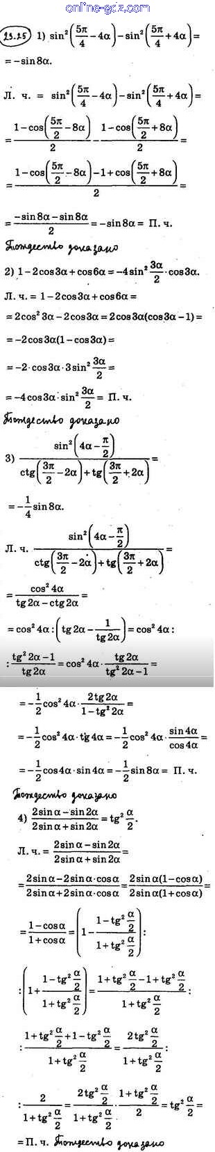 Готовые домашние задания по Алгебре за 10 класс Учебник Мерзляк, Номировский Алгоритм успеха Базовый уровень 2022 - §23. Формулы двойного и половинного углов 23.25