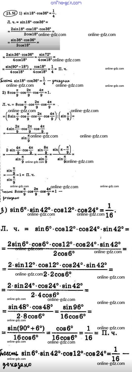 Готовые домашние задания по Алгебре за 10 класс Учебник Мерзляк, Номировский Алгоритм успеха Базовый уровень 2022 - §23. Формулы двойного и половинного углов 23.35