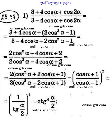 Готовые домашние задания по Алгебре за 10 класс Учебник Мерзляк, Номировский Алгоритм успеха Базовый уровень 2022 - §23. Формулы двойного и половинного углов 23.37