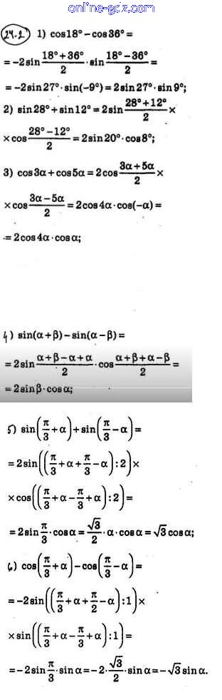 Готовые домашние задания по Алгебре за 10 класс Учебник Мерзляк, Номировский Алгоритм успеха Базовый уровень 2022 - §24. Сумма и разность синусов (косинусов) 24.2