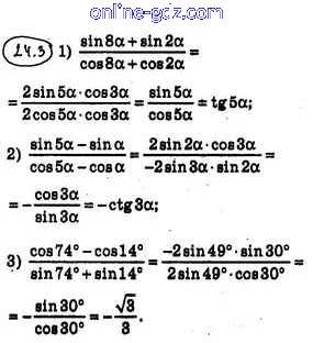 Готовые домашние задания по Алгебре за 10 класс Учебник Мерзляк, Номировский Алгоритм успеха Базовый уровень 2022 - §24. Сумма и разность синусов (косинусов) 24.3