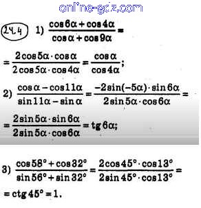 Готовые домашние задания по Алгебре за 10 класс Учебник Мерзляк, Номировский Алгоритм успеха Базовый уровень 2022 - §24. Сумма и разность синусов (косинусов) 24.4