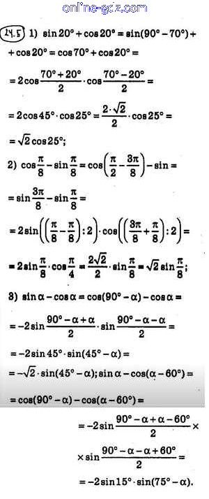 Готовые домашние задания по Алгебре за 10 класс Учебник Мерзляк, Номировский Алгоритм успеха Базовый уровень 2022 - §24. Сумма и разность синусов (косинусов) 24.5