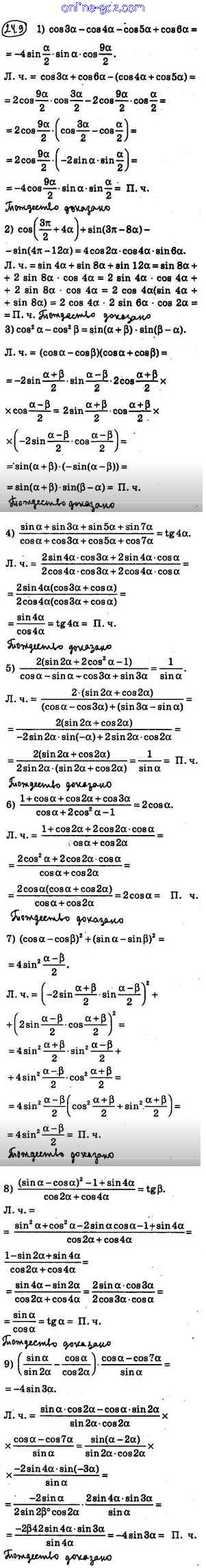 Готовые домашние задания по Алгебре за 10 класс Учебник Мерзляк, Номировский Алгоритм успеха Базовый уровень 2022 - §24. Сумма и разность синусов (косинусов) 24.9