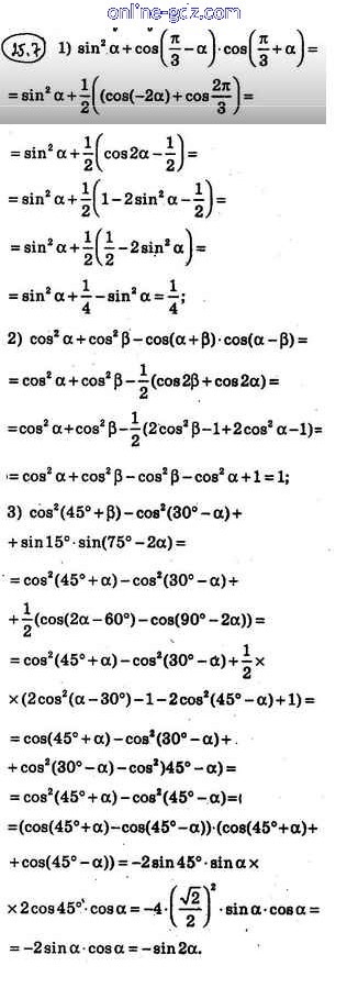 Готовые домашние задания по Алгебре за 10 класс Учебник Мерзляк, Номировский Алгоритм успеха Базовый уровень 2022 - §25. Формулы преобразования произведения тригонометрических функций в сумму 25.7