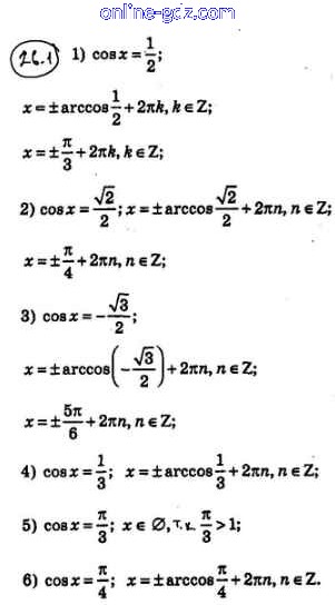 Готовые домашние задания по Алгебре за 10 класс Учебник Мерзляк, Номировский Алгоритм успеха Базовый уровень 2022 - §26. Уравнение cos x = b 26.1
