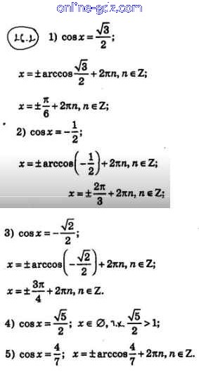 Готовые домашние задания по Алгебре за 10 класс Учебник Мерзляк, Номировский Алгоритм успеха Базовый уровень 2022 - §26. Уравнение cos x = b 26.2
