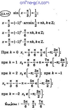 Готовые домашние задания по Алгебре за 10 класс Учебник Мерзляк, Номировский Алгоритм успеха Базовый уровень 2022 - §27. Уравнение sin x = b 27.11
