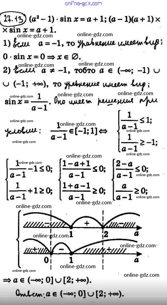 Готовые домашние задания по Алгебре за 10 класс Учебник Мерзляк, Номировский Алгоритм успеха Базовый уровень 2022 - §27. Уравнение sin x = b 27.13