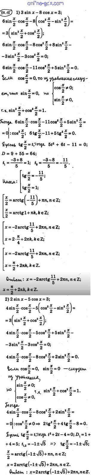 Готовые домашние задания по Алгебре за 10 класс Учебник Мерзляк, Номировский Алгоритм успеха Базовый уровень 2022 - §30. Тригонометрические уравнения, сводящиеся к алгебраическим 30.15