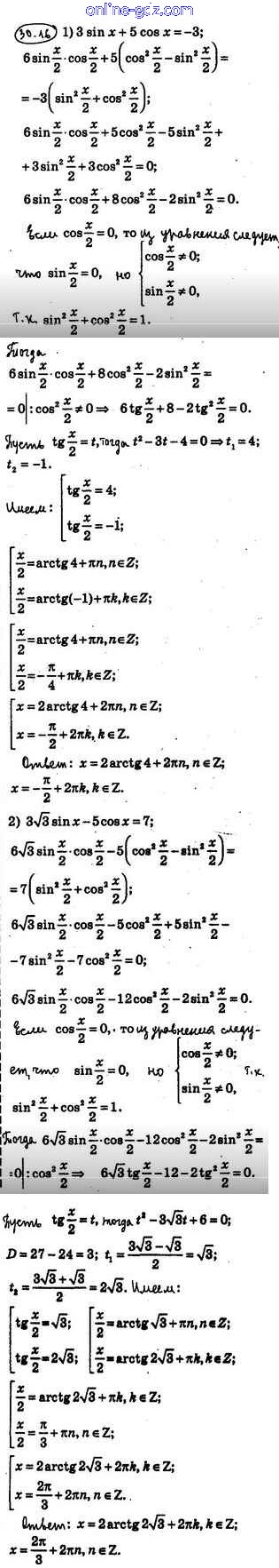 §30. Тригонометрические уравнения, сводящиеся к алгебраическим