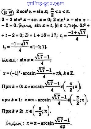 Готовые домашние задания по Алгебре за 10 класс Учебник Мерзляк, Номировский Алгоритм успеха Базовый уровень 2022 - §30. Тригонометрические уравнения, сводящиеся к алгебраическим 30.19