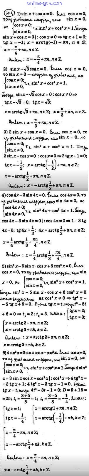§30. Тригонометрические уравнения, сводящиеся к алгебраическим