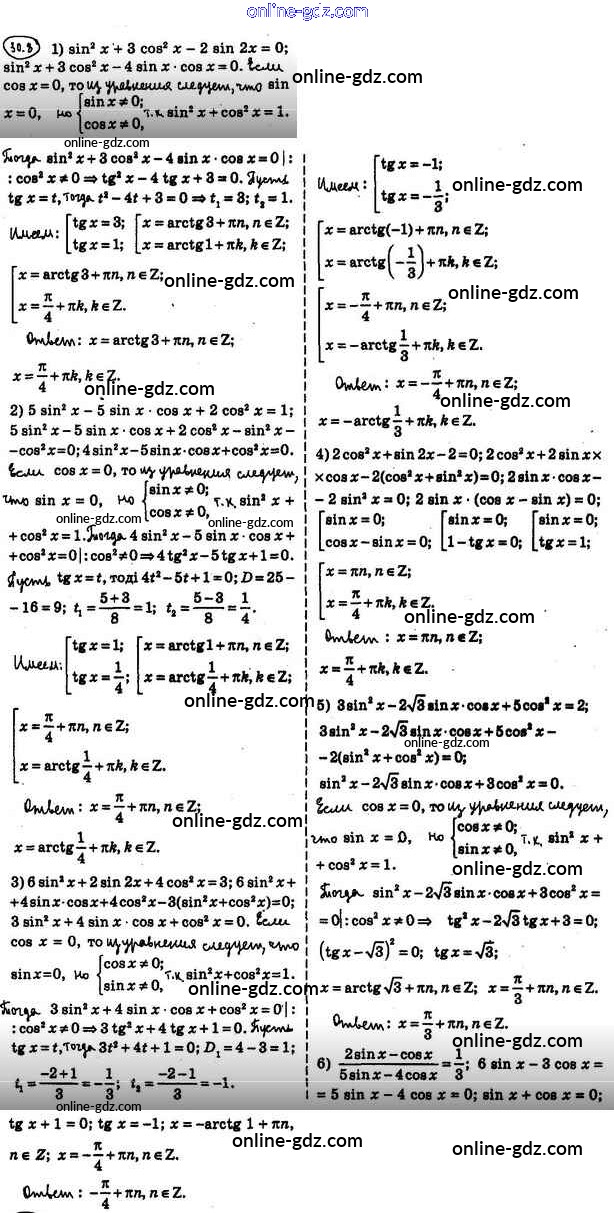 §30. Тригонометрические уравнения, сводящиеся к алгебраическим