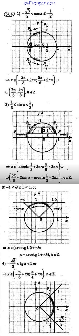 Готовые домашние задания по Алгебре за 10 класс Учебник Мерзляк, Номировский Алгоритм успеха Базовый уровень 2022 - §32. Решение простейших тригонометрических неравенств 32.8