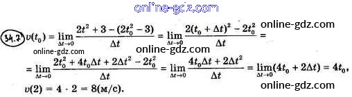Готовые домашние задания по Алгебре за 10 класс Учебник Мерзляк, Номировский Алгоритм успеха Базовый уровень 2022 - §34. Задачи о мгновенной скорости и касательной к графику функции 34.7