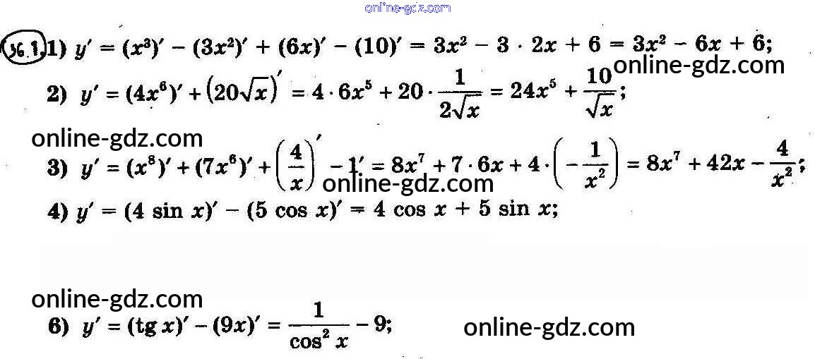 Готовые домашние задания по Алгебре за 10 класс Учебник Мерзляк, Номировский Алгоритм успеха Базовый уровень 2022 - §36. Правила вычисления производных 36.1
