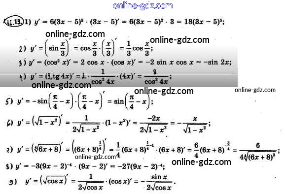 Готовые домашние задания по Алгебре за 10 класс Учебник Мерзляк, Номировский Алгоритм успеха Базовый уровень 2022 - §36. Правила вычисления производных 36.13