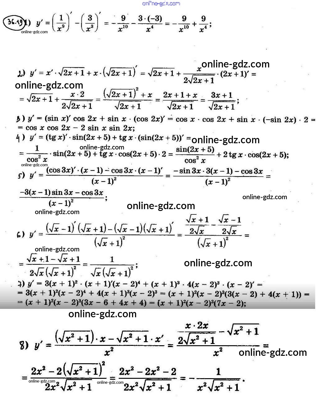 Готовые домашние задания по Алгебре за 10 класс Учебник Мерзляк, Номировский Алгоритм успеха Базовый уровень 2022 - §36. Правила вычисления производных 36.19